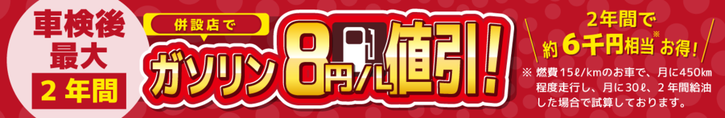 洗車・室内清掃のご優待価格でのご提供や系列店でご利用いただけるガソリン割引券を進呈中!