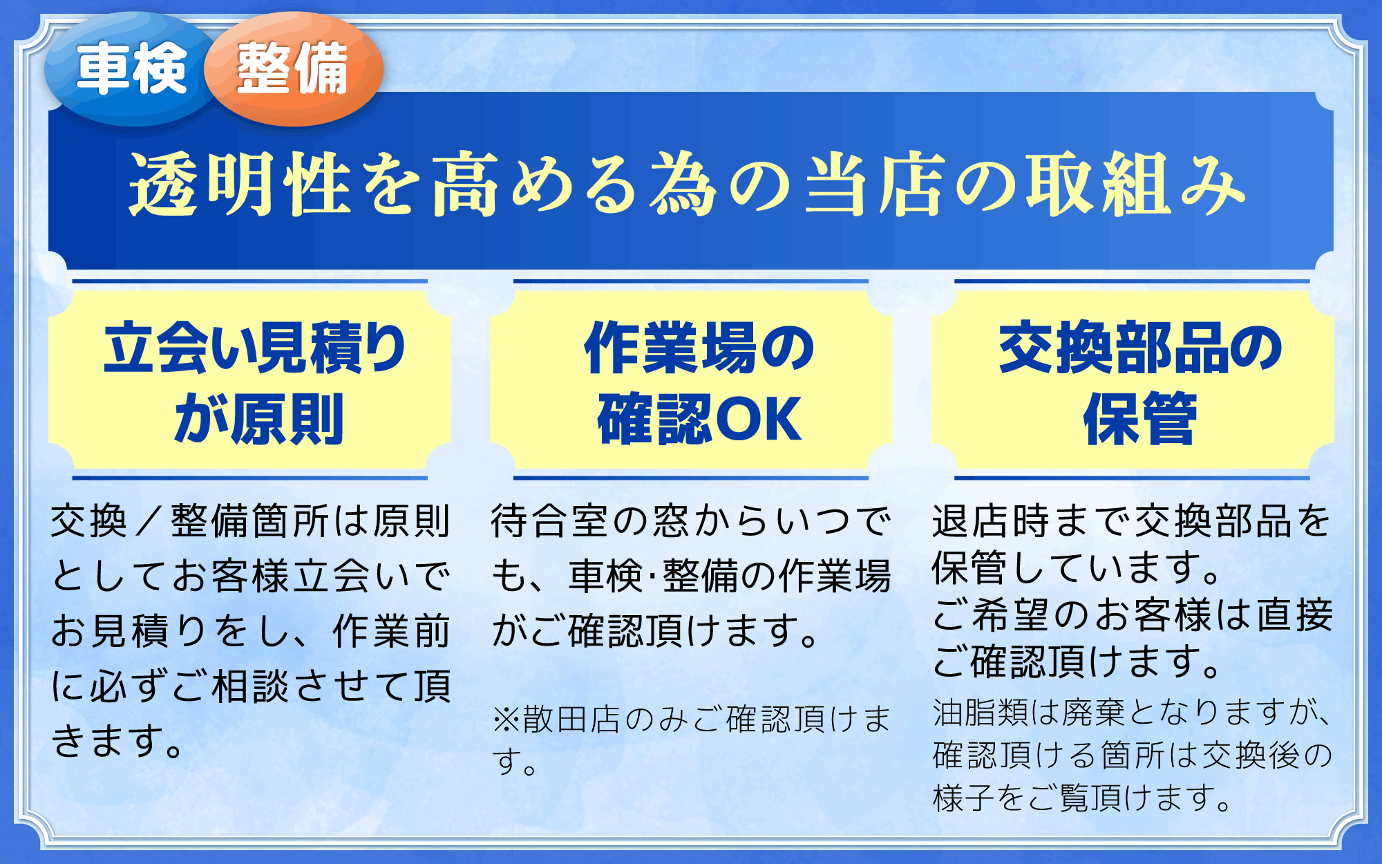 格安料金でお客様に車検をご提供できる理由が3つあります!